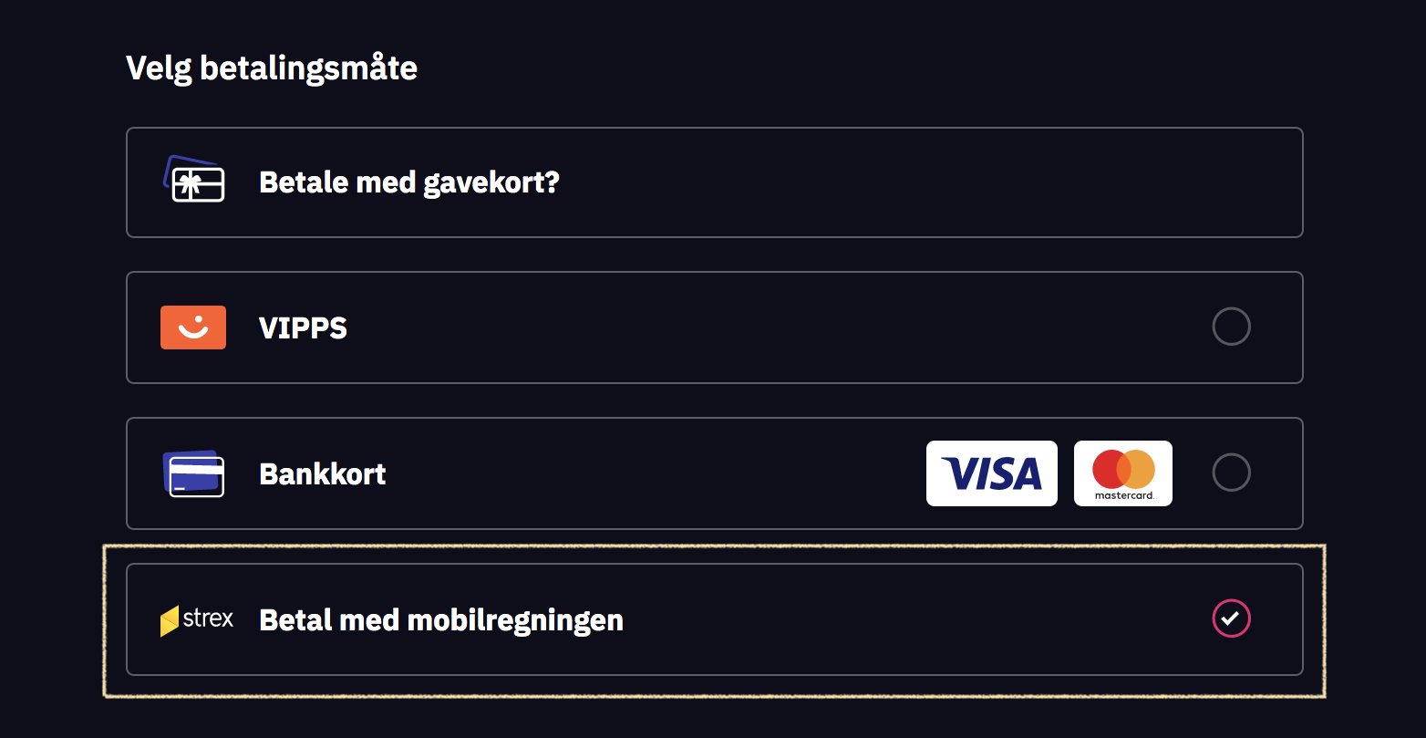- Velg Strex, og aksepter kjøpet ved å skrive OK på SMSen du mottar på din mobiltelefon